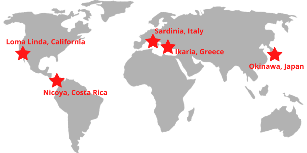 A map of Blue Zones – where the world’s “oldest” people live